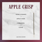 Apple Crisp: A warm blend inspired by family gatherings, capturing freshly picked apples and aromatic spices.